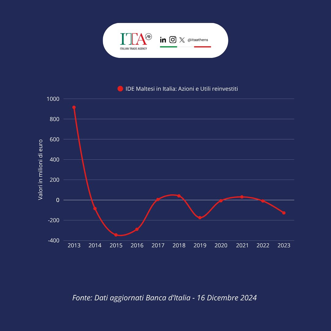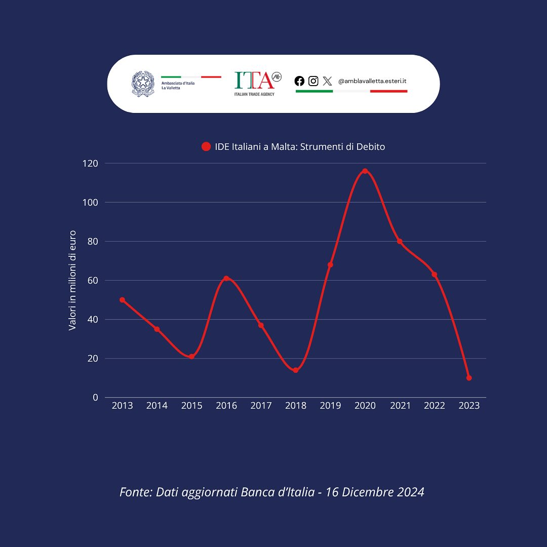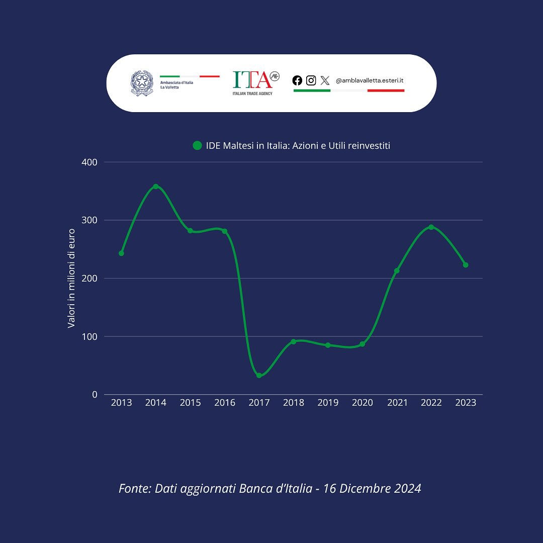 La presenza costante di una componente azionaria significativa indica comunque che le imprese maltesi continuano a puntare sull’Italia come mercato strategico, con investimenti mirati soprattutto nei settori dei servizi finanziari, delle tecnologie e delle attività di intermediazione. Il reinvestimento degli utili sottolinea un interesse a lungo termine, con l’obiettivo di rafforzare la presenza e generare profitti sostenibili nel tempo.